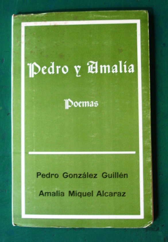 No quedaron otros registros de propiedad o uso en el libro hasta que, unos ciento cincuenta años después de haberse editado, mis tíos pusieron en la portada y otras de sus páginas, en violeta, el sello que mandaron hacer con sus nombres combinados: amaliaipedro. Esta declaración de pertenencia mutua, que se mantiene en su tumba común en el cementerio de Alicante, es uno de los rasgos que mejor definió a esta fantástica pareja. Formados en el breve estallido de libertad de la Segunda República española, amaliaipedro abrazaron las más diversas creencias (el anarquismo, el espiritismo, el orientalismo, el naturismo, el nudismo…), y se las ingeniaron para vivir de acuerdo con ellas en la empobrecida y conservadora sociedad que siguió a la Guerra Civil. Su pequeño departamento de Alicante era visitado con frecuencia por jóvenes idealistas de otras regiones, quienes se iban de ahí con algún regalo en las manos y, sobre todo, con un modelo factible de cómo vivir con alegría y de manera creativa en condiciones externas difíciles. Los dos escribieron libros: él, el poemario Briznas (1950), y ella, los ensayos biográficos María Dolores Miquel en la historia de Jijona (1978) y Salvador Sellés, poeta de Alicante (1980); como no podía dejar de ser, también apareció un libro, Poemas (1985), escrito por los dos.