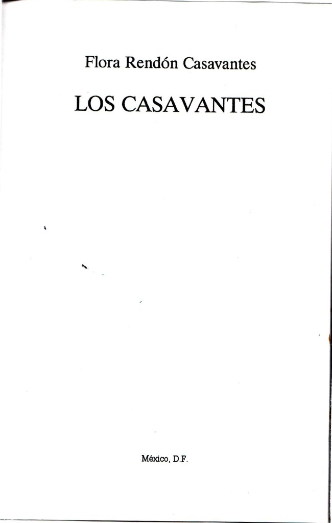 El único libro que Flora publicó, en una edición privada, fue Los Casavantes. En él dotó de rasgos ficticios a unos cuantos personajes con nombres tomados de su familia materna y ubicó sus acciones en un pueblo –no menos imaginario, aunque exista en el estado de Chihuahua– llamado Guerrero. De ese libro, que aquí se reproduce, se hicieron en la Ciudad de México cincuenta ejemplares en julio de 1992.