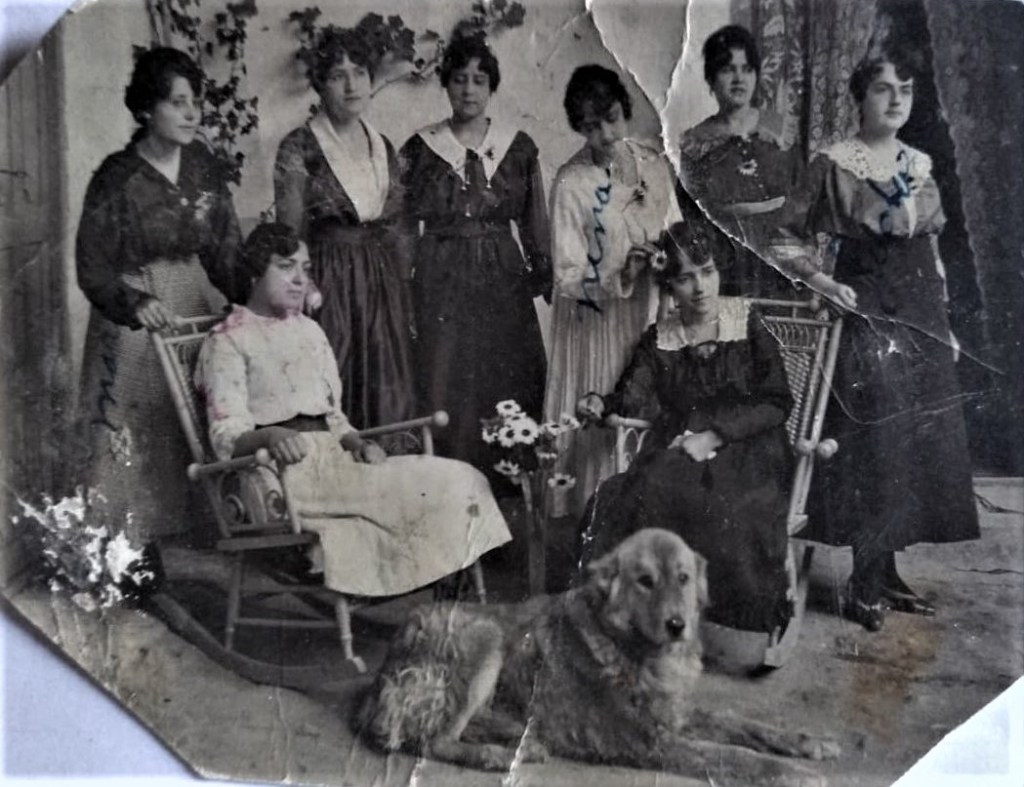 De pie a la izquierda, María González; la cuarta y la sexta a la derecha son sus hijas Magdalena (Nena) y Luz Casavantes González. Ciudad Guerrero, Chihuahua, c. 1920. Colección: familia Rendón Hinterholzer
