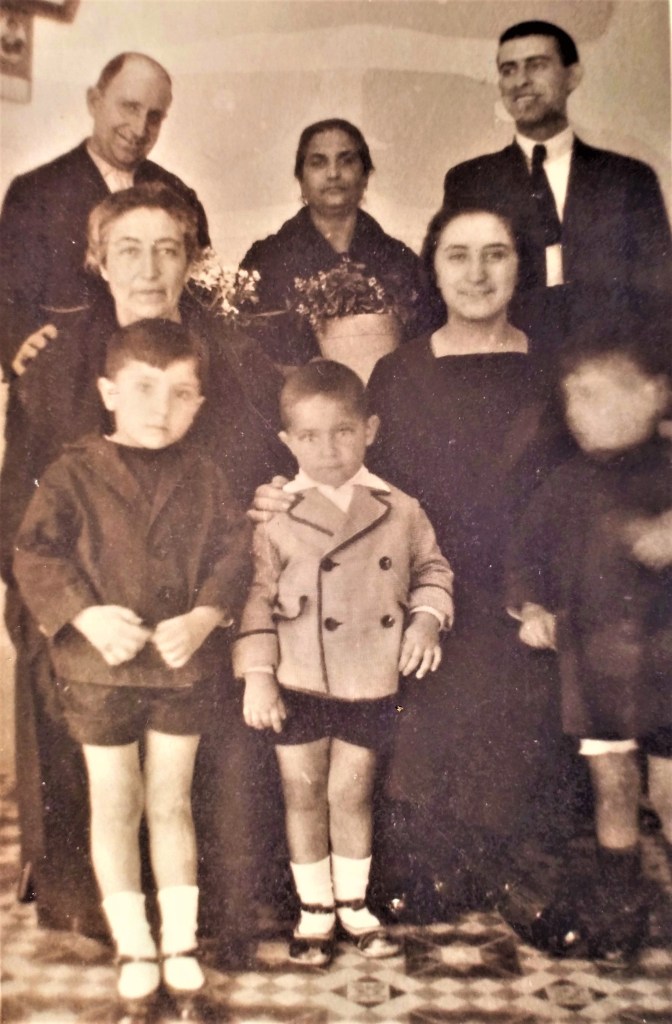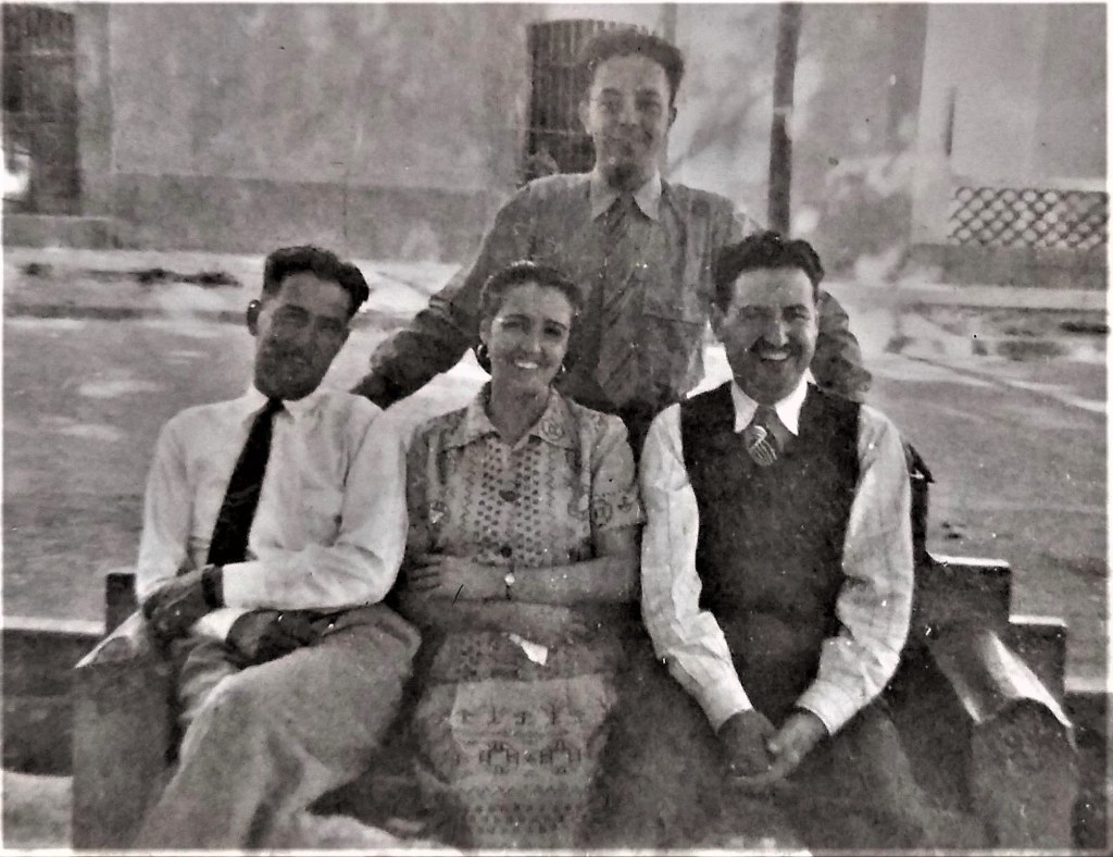 Abajo a la izquierda Ángel Miquel Alcaraz y atrás de él sus padres, María Alcaraz y Vicente Miquel. Xixona, Alicante, 1925. Colección: familia Molina Miquel.