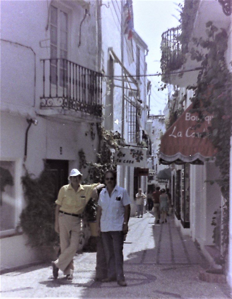 Ángel Miquel Alcaraz y Alfonso Simón Pelegrí, Marbella, años ochenta. Colección: familia Miquel Rendón.