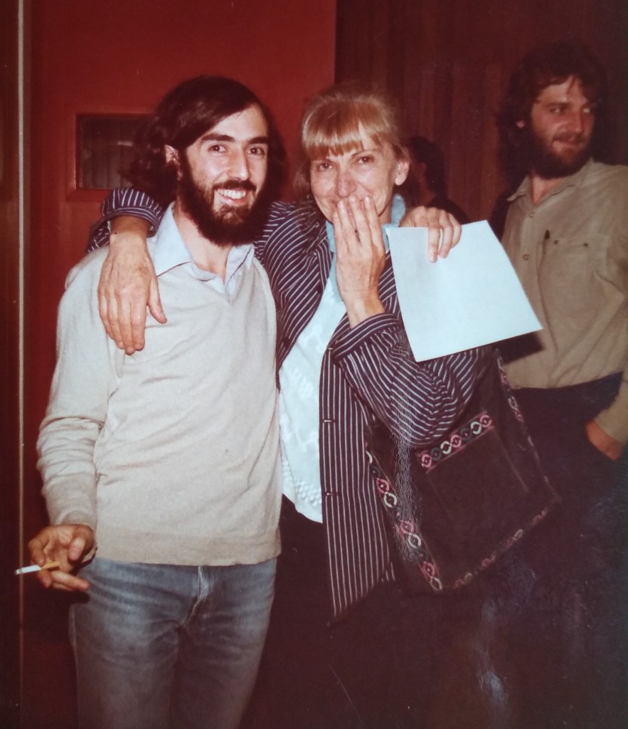 Con Alcira Soust Scaffo y al fondo Francisco Montellano. Ciudad de México, 1985. Colección: Ángel Miquel.