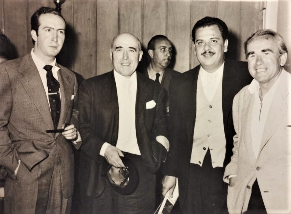 Presentado sin éxito a posibles patrocinadores, el proyecto no cuajó. Tampoco se pudo invitar a Pío Caro a festejar su octogésimo aniversario en Tepoztlán. Los documentos recopilados quedaron en una carpeta y con el tiempo se cubrieron de densas capas de olvido. Ahora reaparecieron azarosamente tras el encuentro con un ejemplar de El neorrealismo cinematográfico italiano en la Biblioteca del Orfeó. Además de las fotocopias de los textos a incluir en el libro y el guion del proyecto, en la carpeta estaba una imagen que mi amigo Eduardo de la Vega calificó como “magnífica e histórica” debido a que en ella aparecen algunos de los principales artífices del primer cine independiente mexicano: en primer plano, Pío Caro, Carlos Velo, Manuel Barbachano Ponce y Walter Reuter; atrás, Fernando Gamboa. Su fecha aproximada, 1954.