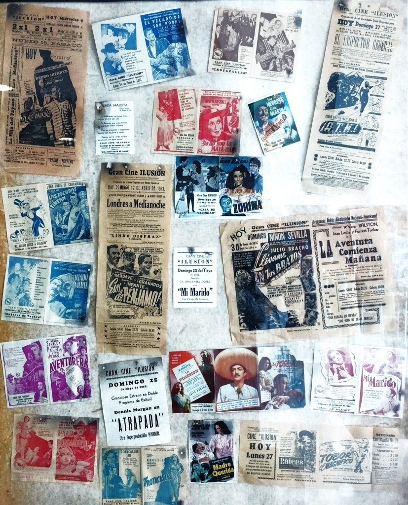 En la misma calle Hidalgo donde a unos cincuenta metros se encuentran la Plaza de Armas y la Catedral zacatecanas, se inauguró en febrero de 1936 el Cine Ilusión. El centro de la ciudad adquirió así un segundo recinto amplio de espectáculos, con fachada estilo déco y capacidad para 1200 espectadores, sólo superado en esto último por el antiguo y un poco más amplio Teatro Calderón. El Ilusión (o El Hilachas, como me cuenta Alain Derbez que le decían), alargó su vida hasta julio de 1993, cuando sucumbió bajo un incendio. Uno de sus asistentes asiduos, el comerciante español Álvaro Zaldívar Abreu, coleccionó y conservó programas publicitarios de la década de los cincuenta que ahora se muestran, como pertinente evocación, en el vestíbulo del hotel erigido en el espacio que ocupaba.